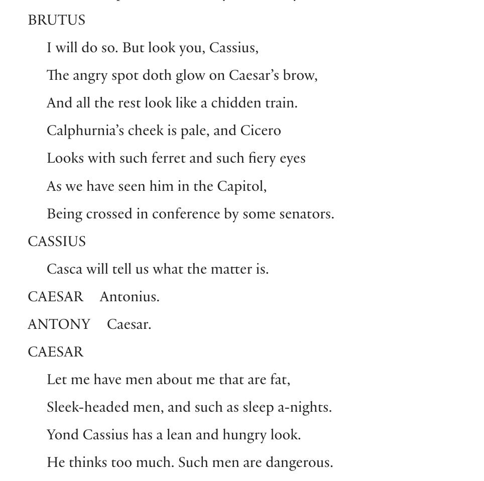 CAESAR [pointedly]: I don’t like the way Cassius looks. [Even louder] I DON’T LIKE HIS WEIGHT