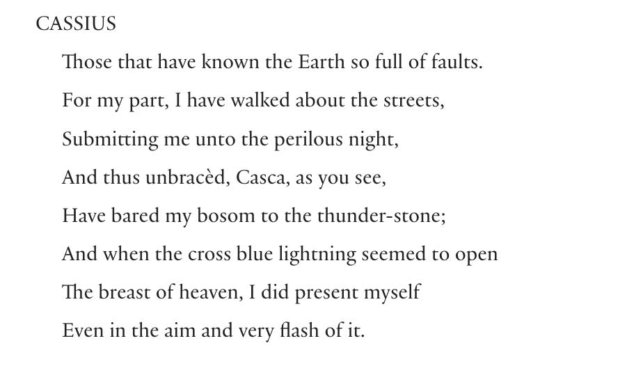 I’ve been rereading Julius Caesar this week in a fit of nostalgia.1 Two things have struck me on this go-round which did not always stick out to me before: