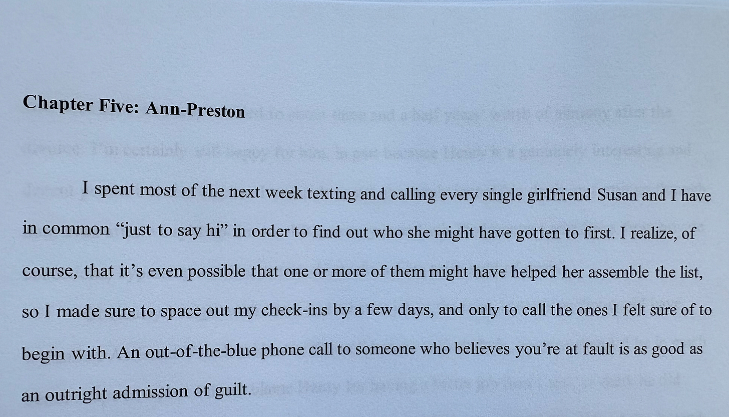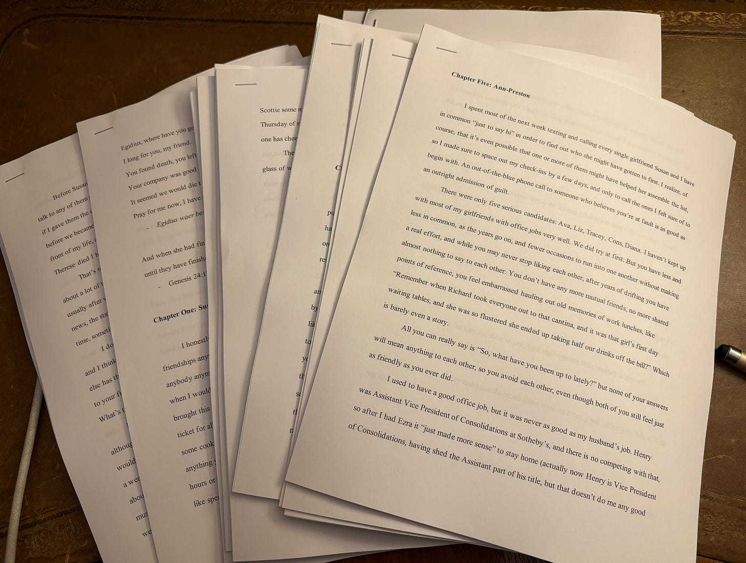 Third order of business: I’m working on edits for my third novel, Meeting New People, which are due at the end of the month. This is my seventh book, and the first time I have ever printed out a manuscript in order to review edits and make changes by hand. Turns out this is a very helpful practice!