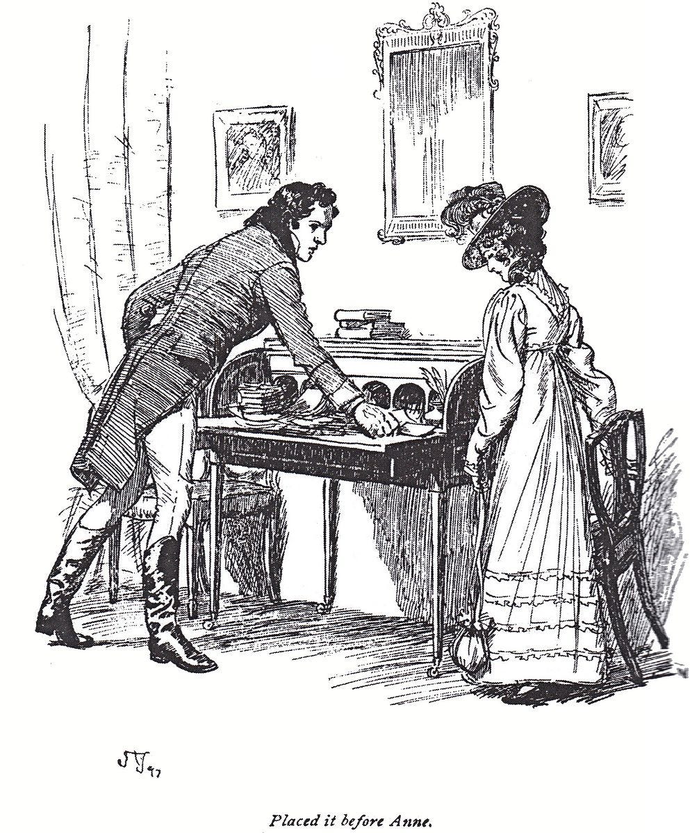 Previously: Jane Austen’s Persuasion, parts I, II, III, and IV.