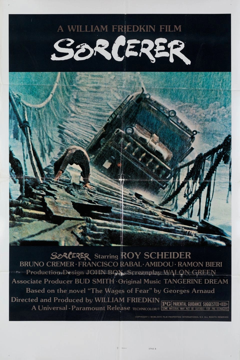The two things everyone says about Sorcerer is that it unfairly tanked a lot of Friedkin’s post-Exorcist, post-French Connection auteur goodwill, and that it tanked in part because the title confused audiences into thinking it was going to be a movie about wizards2 and in part because it came out at almost the exact same time as Star Wars: A New Hope. (Sometimes to really drive the point home people will say “as a little picture called Star Wars,” but I think that’s unnecessary embroidering.)