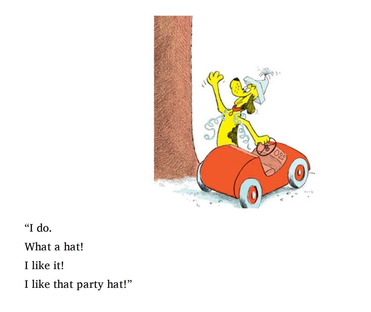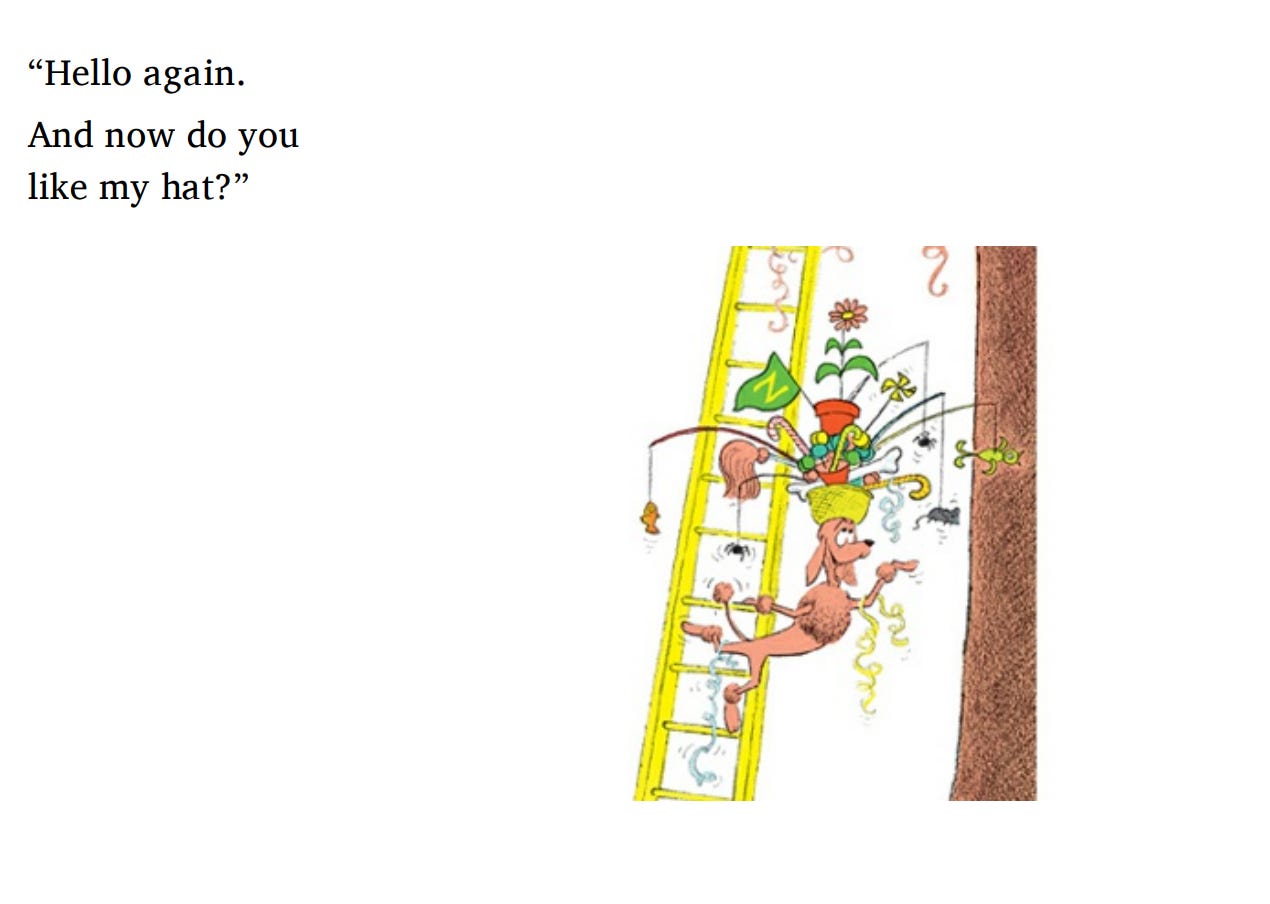 “Do you like my hat?” -P.D. Eastman, Go, Dog, Go