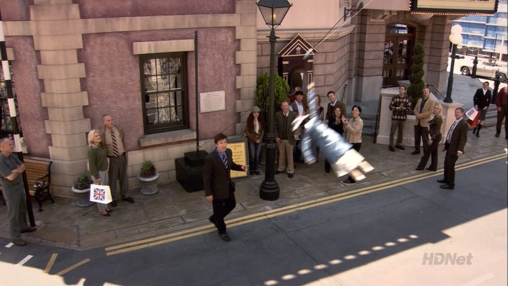 Once, when I was straining to replace the big wall calendar by the elevator bank: “Look at him, with his long arms!”
