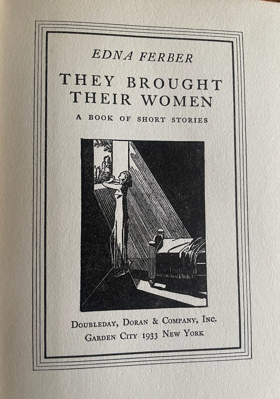 There’s a terrific used bookstore near us in Michigan, and last week I managed to pick up a copy of Edna Ferber’s short story collection, They Brought Their Women, almost entirely on the strength of the title. Decisive and arresting, no?