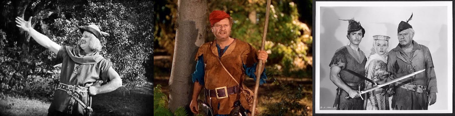 Alan Hale, Sr. might hold the record for most onscreen portrayals of Little John, having reprised the role in the 1922 Douglas Fairbanks version, the aforementioned 1939 version, and in 1950’s Rogues of Sherwood Forest. Lord love any actor who starts looking like he’s in his 40s in his 20s and continues to look like he’s in his 40s until his death.